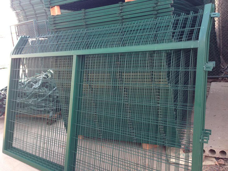 通线2012-8001防护栅栏分为两种。一种是用在铁路通线桥下的隔离网是跟根据铁路桥下防护栅栏2012(8002)标准来生产制作的,铁路防护栅栏的金属网片规格为2760*1700mm、丝径为4.0mm、网孔为75*150mm、边框为Q235材质的30*50*2.0mm矩管,然后加工成型后整体热镀锌浸塑进行防腐处理。第二种是用在铁路通线俩侧的隔离网是根据铁路线路防护栅栏通线(2012)8001标准来生产制作的,铁路防护栅栏的金属网片规格为2760*1797mm、丝径为4.0mm、网孔为75*150mm、边框为Q235材质的30*50*2.0mm矩管带有30度折弯,然后加工成型后整体热镀锌浸塑进行防腐处理。
