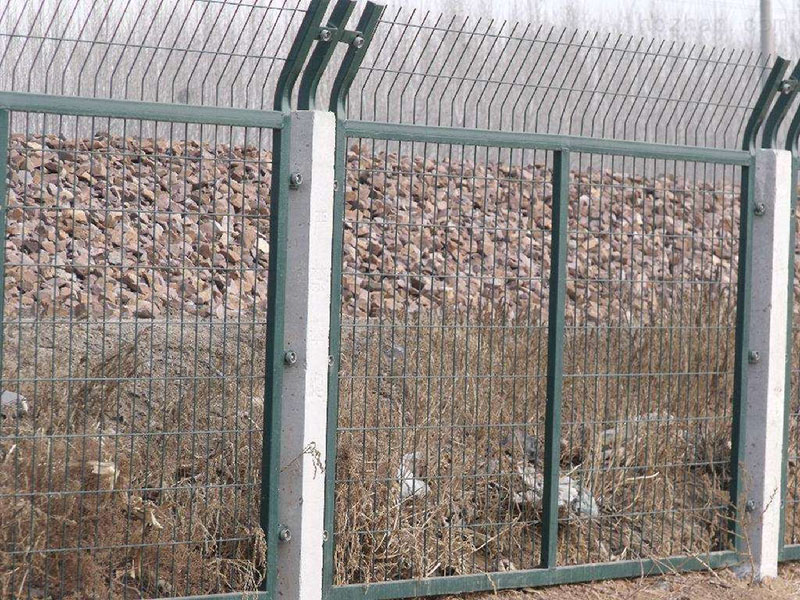产品材质及工艺:内部采用HPB300冷拔低碳钢丝与Q235矩管边框;焊接完毕后,表面采用整体热镀锌后浸塑处理,浸塑粉末一般采用墨绿、表面光滑、平整、日久抗腐蚀、抗紫外线的特性。铁路防护栅栏是铁路的安全设施安装工程,主要应用在铁路轨道两侧,用来防止来往的行人接近轨道及来往的火车,以保证行人的人身安全。因此,铁路防护栅栏无论在技术上还是在质量上都比其他隔离栅要求更加严格。铁路防护栅栏采用立柱混凝土浇筑件,工程造价低,强度高,整体稳定性好,适合大面积采用。