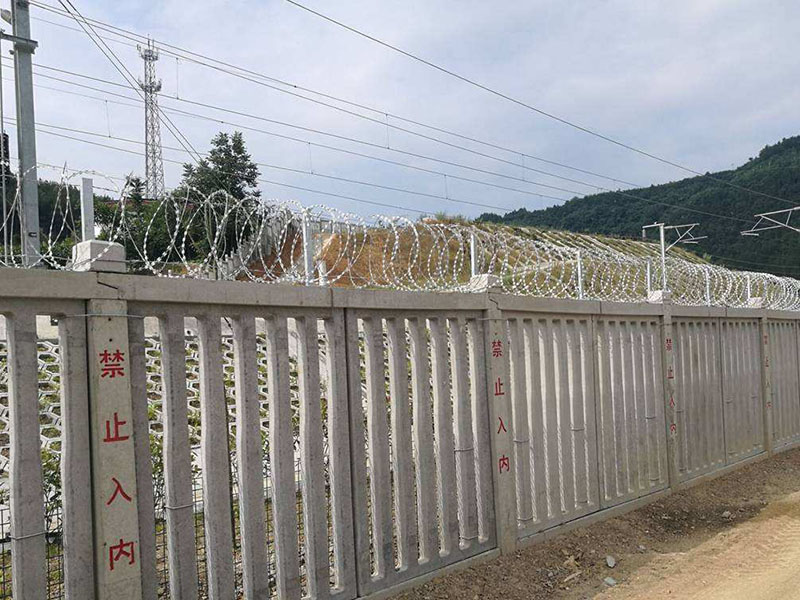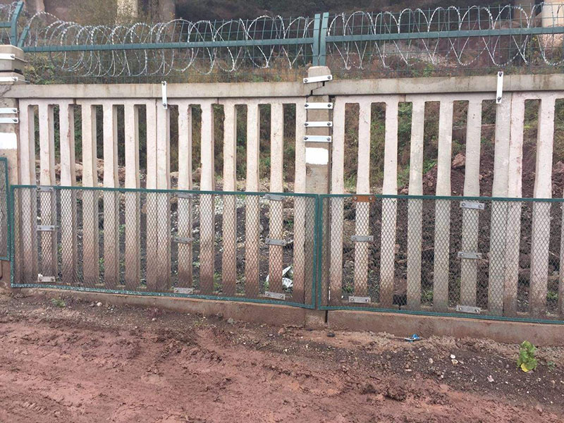 产品材质及工艺:内部采用HPB300冷拔低碳钢丝与Q235矩管边框;焊接完毕后,表面采用整体热镀锌后浸塑处理,浸塑粉末一般采用墨绿、表面光滑、平整、日久抗腐蚀、抗紫外线的特性。铁路防护栅栏是铁路的安全设施安装工程,主要应用在铁路轨道两侧,用来防止来往的行人接近轨道及来往的火车,以保证行人的人身安全。因此,铁路防护栅栏无论在技术上还是在质量上都比其他隔离栅要求更加严格。铁路防护栅栏采用立柱混凝土浇筑件,工程造价低,强度高,整体稳定性好,适合大面积采用。